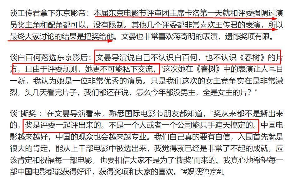 看完整个长文可知,白百何还了王传君清白,她内涵的从来不是王传君,而是《春树》的导演张律和制片人彭瑾。