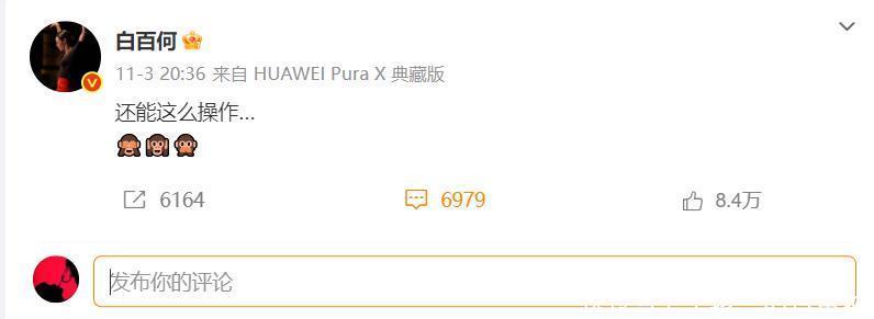 11月3日,白百何突然发文“还能这么操作”,并配上了一组捂嘴、捂耳、捂眼的表情。